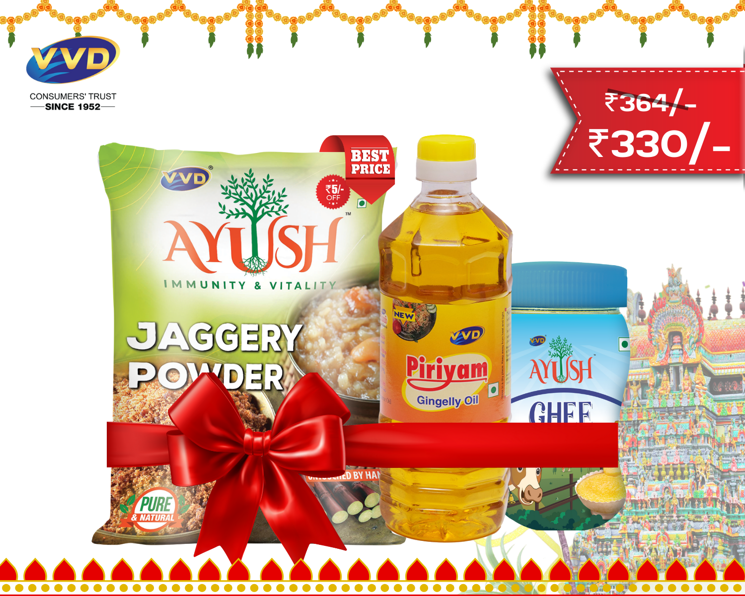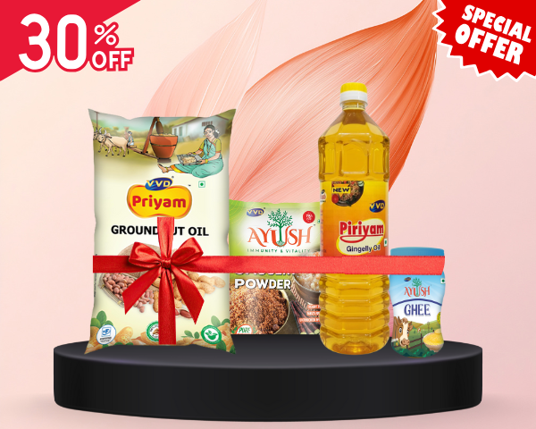 VVD Gold Coconut Oil - Pouch 800ml + VVD Ayush Jaggery Powder - Pouch 500gm + VVD Priyam Compounded Asafoetida - 50gm